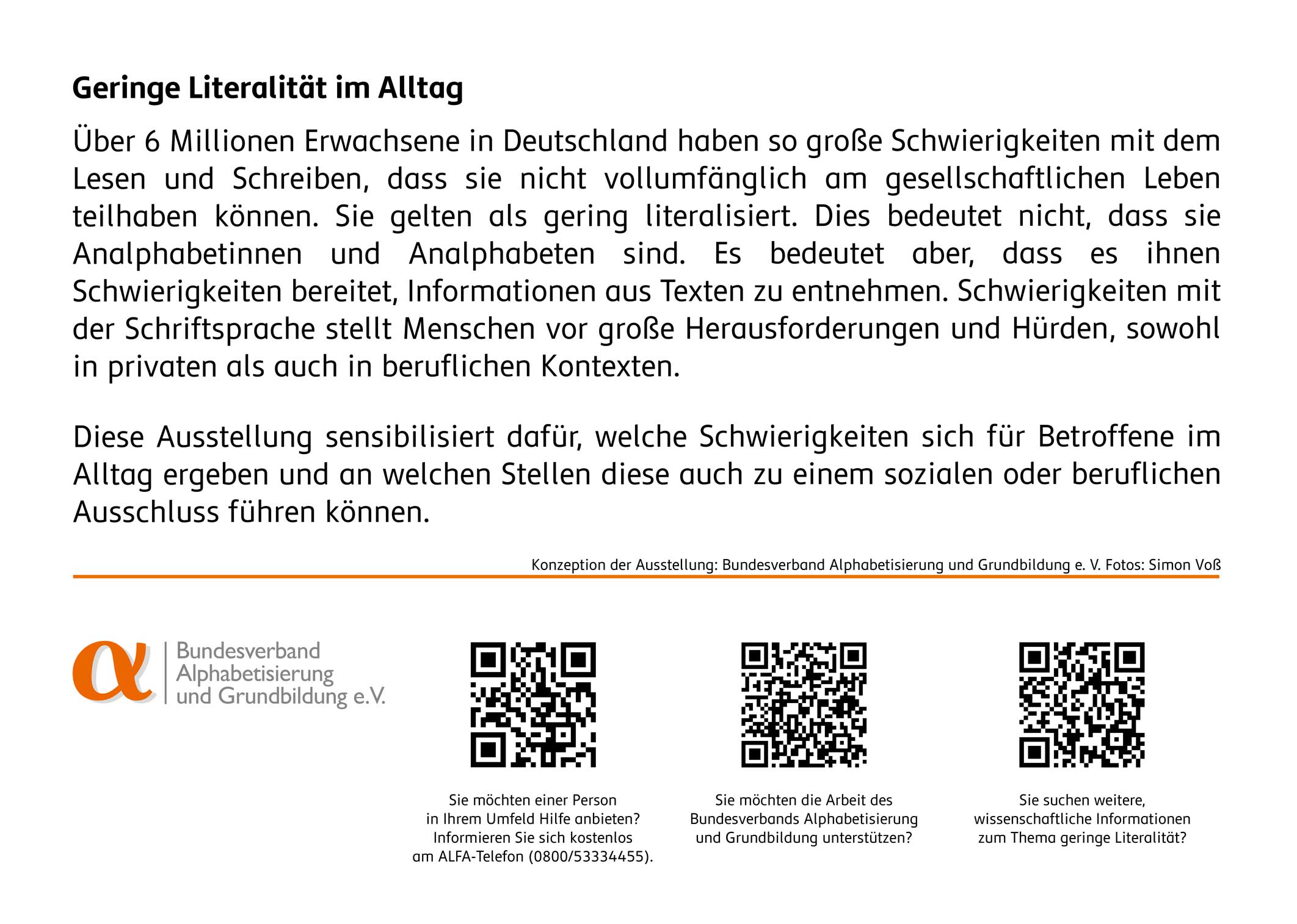 Viele Menschen mit Lese- und Schreibproblemen verbergen ihre Schwierigkeiten. Sie befürchten bloßgesellt zu werden oder ihren Arbeitsplatz zu verlieren. Für sie heißt das: Nicht auffallen und die Ausbildung, Freundschaften oder sogar ihre Partnerschaft riskieren. Geringe Literalität ist in vielen Bereichen unserer Gesellschaft weiterhin ein Tabuthema und der Informationsstand darüber in der Öffentlichkeit zu gering.