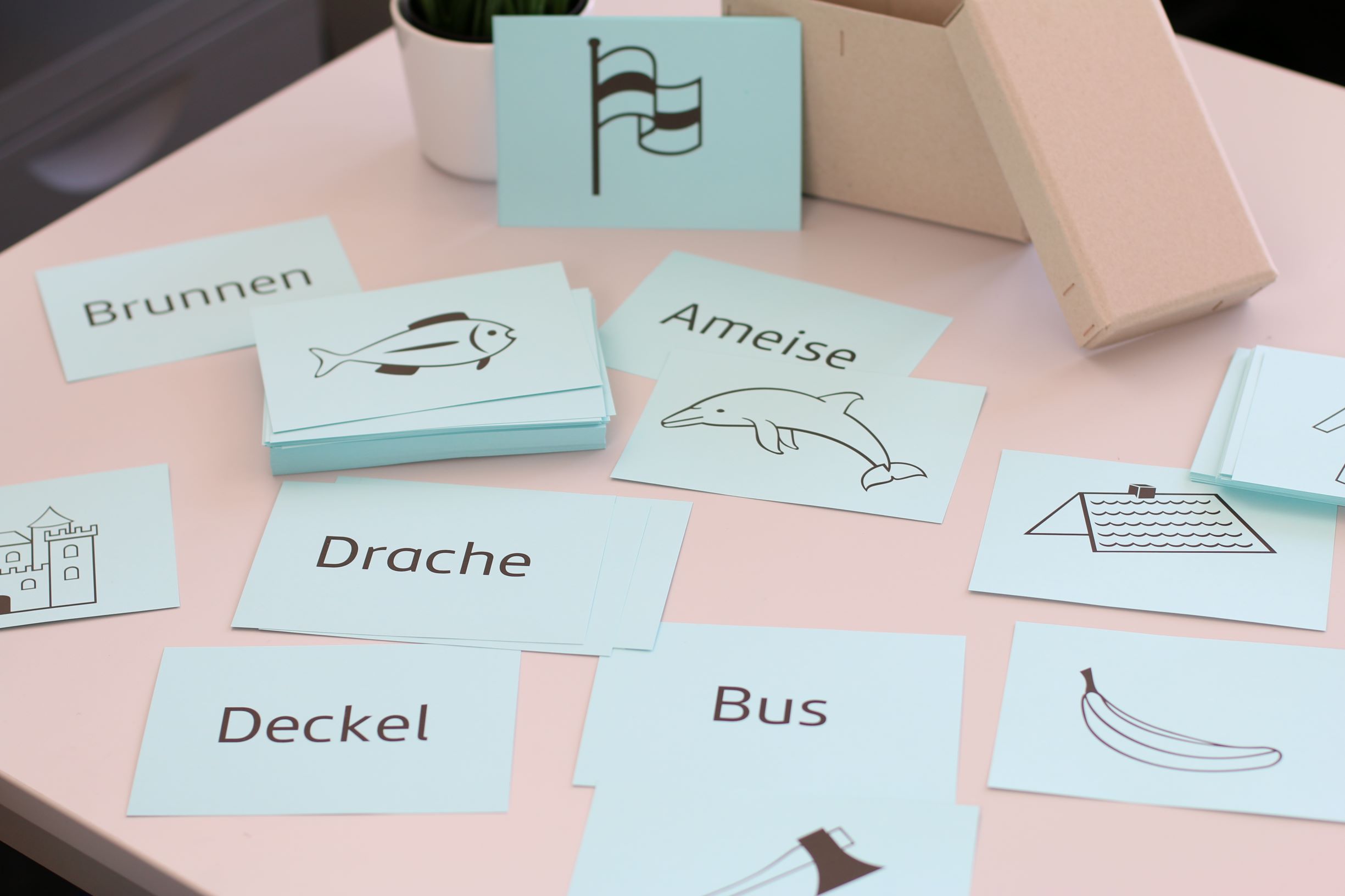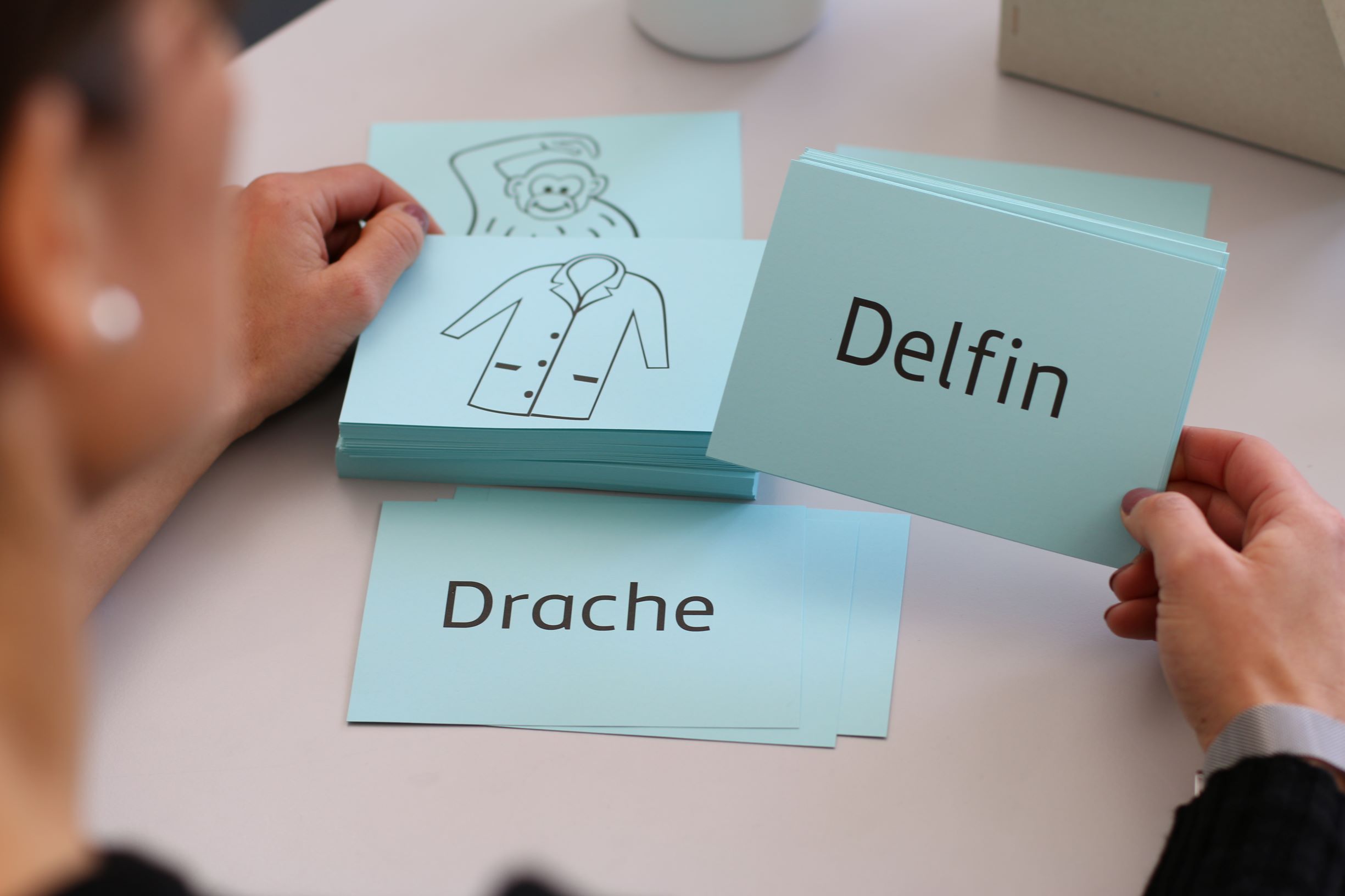 168 Bild-Wort-Karten beidseitig bedruckt, eine Seite Wort, die andere mit einem entsprechenden Bild. Dargestellt werden sämtliche Anlaute (ausgenommen C,V und Y) und der Auslaut –ch. Das Bundesamt für Migration und Flüchtlinge (BAMF) hat die Wendekarten als geeignetes Zusatzmaterial für Alphabetisierungskurse eingestuft und in die Liste zugelassener Lehrwerke aufgenommen.