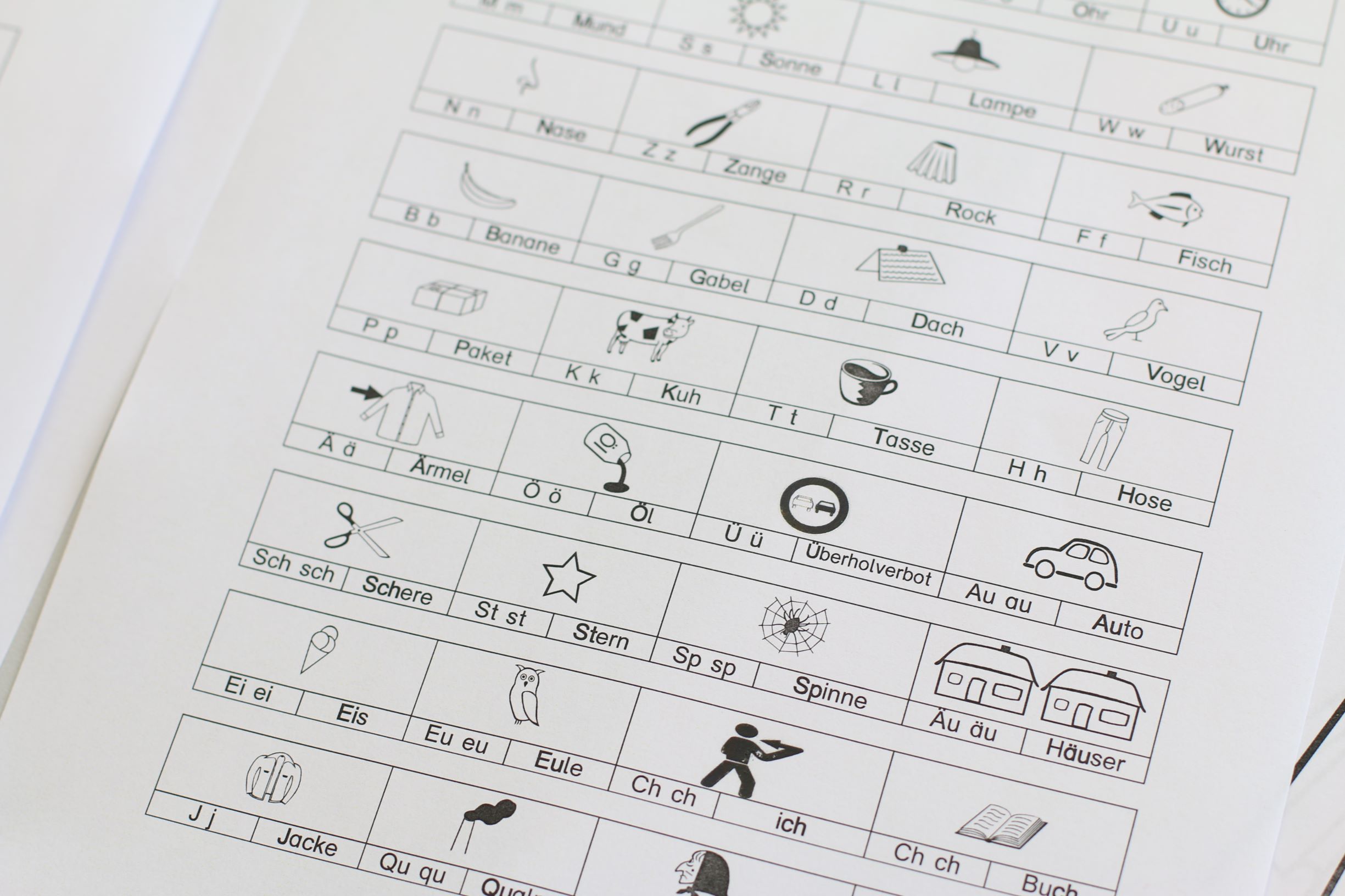 - „Buchstaben und Bilder“ können kombiniert werden mit den Kopiervorlagen „Vom Bild zum Laut zum Buchstaben“ und „Vom Bild zum Laut zum Buchstaben (mit Artikel)“.