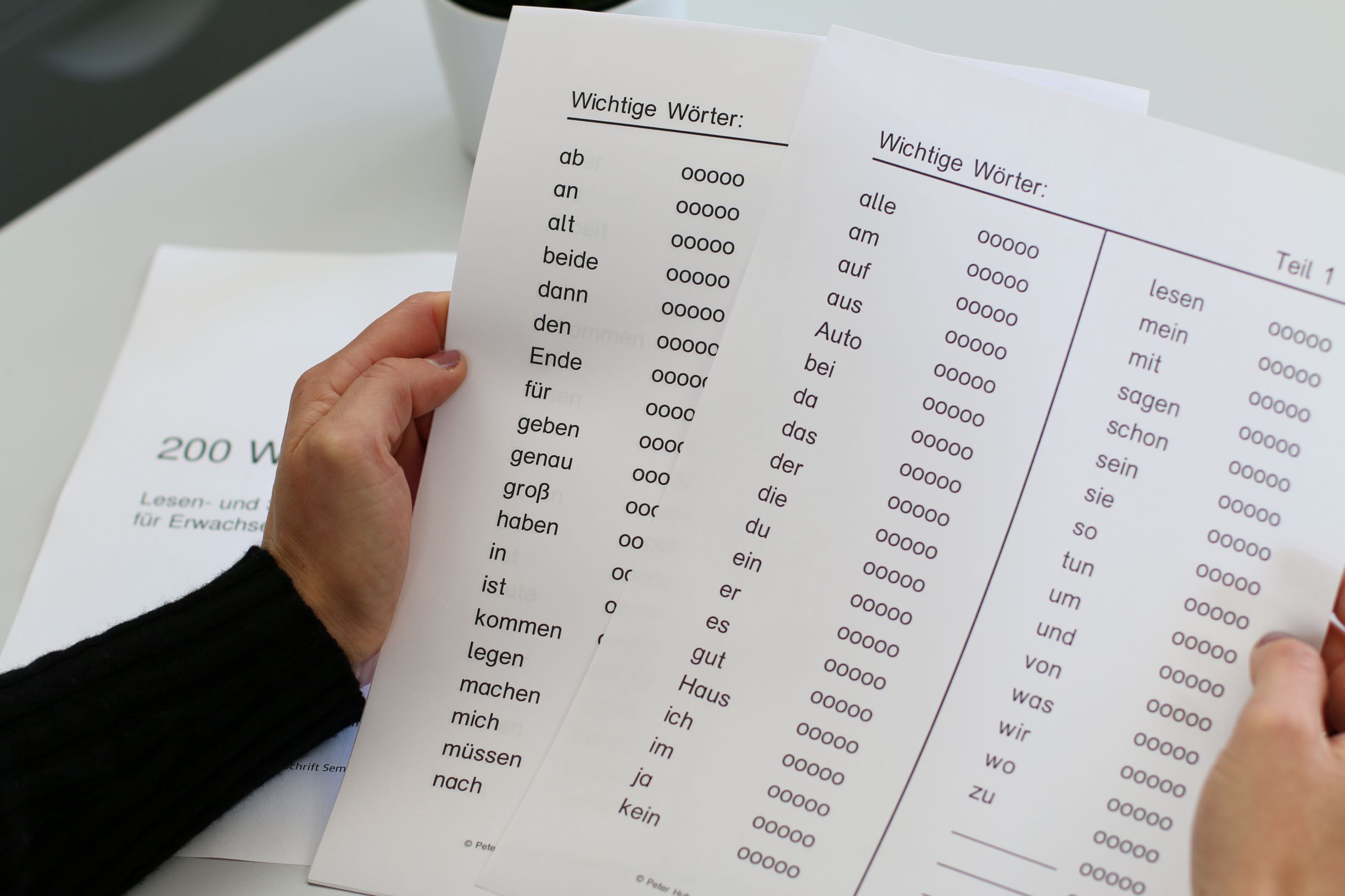 Die Kopiervorlage "200 wichtige Wörter" sind Lern- und Übungsmaterialien für Alphabetisierungs-Kurse, in denen ein begrenzter und überschaubarer Wortschatz systematisch erschlossen werden soll. Auf den letzten beiden Seiten der Kopiervorlagen befinden sich jeweils 100 Wörter, die die zu lernenden häufigen Wörter enthalten.